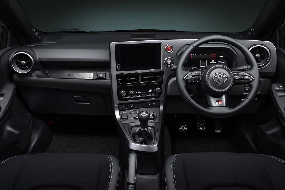 À l’intérieur, la GR Yaris Seb Ogier Edition ne déçoit pas non plus. Le tableau de bord est orné d’une plaque commémorative de victoire en WRC, un clin d’œil aux exploits d’Ogier. Le combiné d’instruments, avec son écran TFT GR, affiche les modes “Morizo” et “Seb” et rappelle l’héritage du rallye. Le volant, doté de surpiqûres bleu, blanc, rouge, ajoute une touche de raffinement aux éléments sportifs de l’intérieur. Chaque détail, des sièges aux commandes, est pensé pour offrir une expérience de conduite haut de gamme, tout en restant fidèle à l’esprit de la compétition.