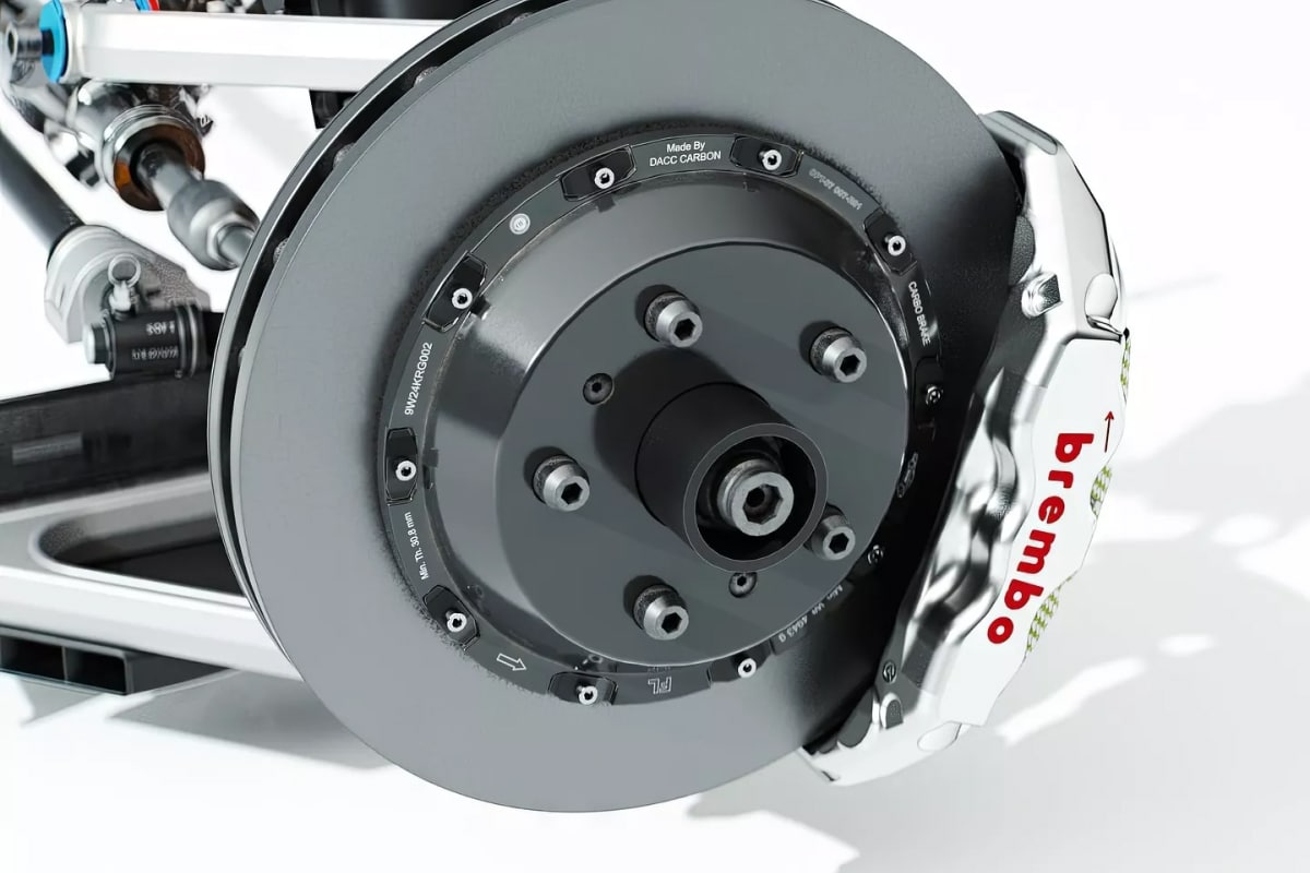 C’est là qu’Officine Fioravanti intervient. Leur objectif n’est pas de trahir l’esprit de la F40, mais d’améliorer ce qui doit l’être. Ils ont remplacé la suspension d’origine par un système Öhlins TTX 36 réglable sur quatre niveaux, installé de nouveaux bras de suspension en aluminium usiné et amélioré les roulements. Résultat : plus de stabilité à haute vitesse et un comportement plus prévisible en virage. Le freinage a lui aussi été entièrement revu. Les vieux freins d’origine ont laissé place à des disques en carbone-céramique et des étriers Brembo – six pistons à l’avant, quatre à l’arrière. Un ABS modernisé a été ajouté, offrant un meilleur contrôle lors des gros freinages. De quoi éviter à certains propriétaires de transformer leur précieuse F40 en épave après un freinage un peu trop optimiste.