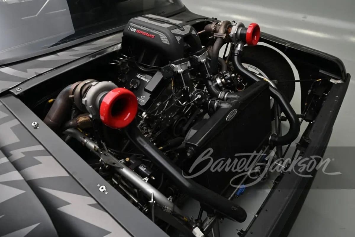 Créé en 2018 en collaboration avec Detroit Speed, le Hoonitruck est bien plus qu’un simple pick-up Ford F-150 de 1977. Sous son apparence vintage se cache un châssis tubulaire recouvert de panneaux en aluminium façonnés à la main. Mais ce qui le distingue vraiment, c’est son moteur. Inspiré de celui de la Ford GT victorieuse au Mans, son V6 EcoBoost 3,5 litres biturbo développe une puissance impressionnante de 914 chevaux et un couple d’environ 950 Nm. Ce monstre est équipé d’une transmission intégrale et d’une boîte séquentielle SADEV à six vitesses. Chaque élément de sa conception a été optimisé pour le drifting et les glissades spectaculaires vues dans Gymkhana 10 et Climbkhana Two. Avec son collecteur d’admission sur mesure et ses turbocompresseurs proéminents, le Hoonitruck est un chef-d’œuvre d’ingénierie taillé pour repousser les limites.